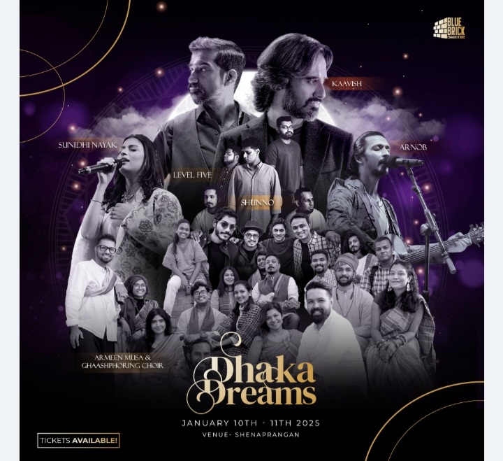 ‘ঢাকা ড্রিমস’ কনসার্টটি দুইদিন চলবে। প্রথমদিন (১০ জানুয়ারি) পারফর্ম করবে দেশের জনপ্রিয় দুই ব্যান্ড শূন্য ও লেভেল ফাইভ। এরপর মঞ্চ মাতাবে কাভিশ